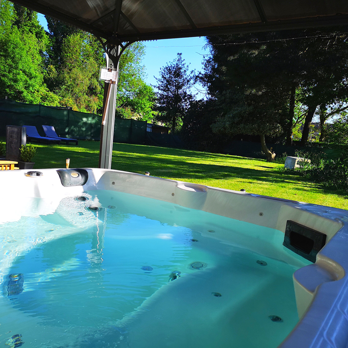 Notre espace Spa privatif comprend une magnifique piscine intérieure chauffée avec son plafond tropical, un hammam aromatique, un sauna vitré, un jacuzzi extérieur XXL à débordement, un jardin, un espace relax, des vestiaires, des douches et un mini bar. Cet espace peut être loué de 2 à 12 personnes. La décoration sobre et chic agrémenté de matériaux tel que le bois et la pierre réchauffent l’atmosphère pour un moment de luxe et de zénitude.